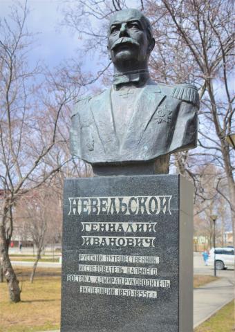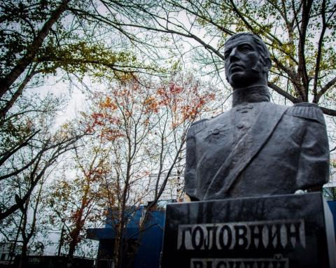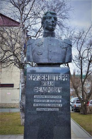 Памятник И.Ф.Крузенштерна в Южно-Сахалинске. Установлен в сквере на пересечении ул. Сахалинской и ул. Милицейской в 1982 г. в память о великом русском мореплавателе И.Ф. Крузенштерне. Скульпторы Р. Муродян и В. Клочков.