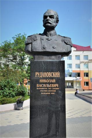 Расположен в сквере на ул. Сахалинской, на берегу реки Сусуи. Установлен в сентябре 1982 г. в ознаменование 100-летнего юбилея города.